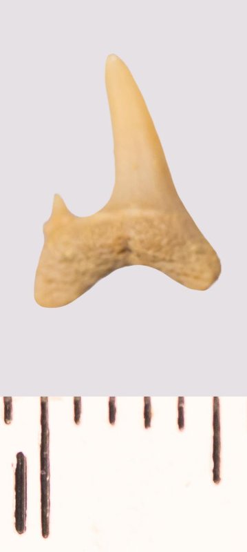 Зуб. Акула. Scapanorhynchus rhaphiodon Agassiz, 1843. Классификация: Хордовые Chordata, Позвоночные Vertebrata, Хрящевые рыбы Chondrichthyes, Пластиножаберные Elasmobranchii