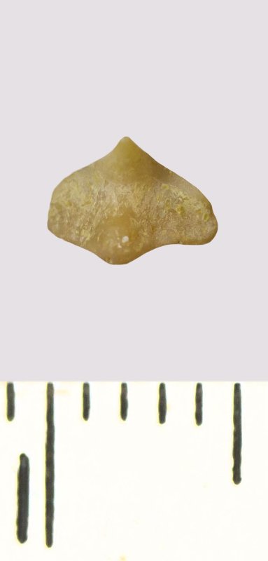 Зуб. Акула. Squatina sp. Классификация: Хордовые Chordata, Позвоночные Vertebrata, Хрящевые рыбы Chondrichthyes, Пластиножаберные Elasmobranchii