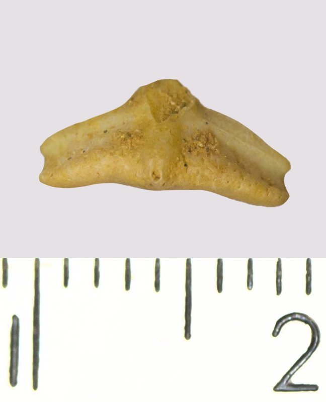 Зуб. Акула. Squatina sp. Классификация: Хордовые Chordata, Позвоночные Vertebrata, Хрящевые рыбы Chondrichthyes, Пластиножаберные Elasmobranchii