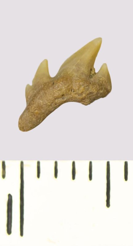 Зуб. Акула. Hexanchiformes gen. et sp. indet. Классификация: Хордовые Chordata, Позвоночные Vertebrata, Хрящевые рыбы Chondrichthyes, Пластиножаберные Elasmobranchii