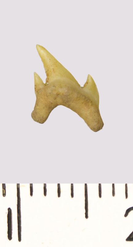 Зуб. Акула. Hexanchiformes gen. et sp. indet. Классификация: Хордовые Chordata, Позвоночные Vertebrata, Хрящевые рыбы Chondrichthyes, Пластиножаберные Elasmobranchii