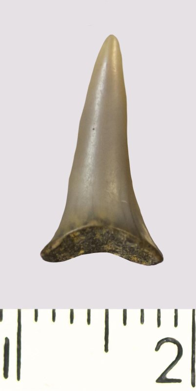 Зуб (фрагмент). Акула. Odontaspis venusta (Leriche, 1929). Классификация: Хордовые Chordata, Позвоночные Vertebrata, Хрящевые рыбы Chondrichthyes, Пластиножаберные Elasmobranchii
