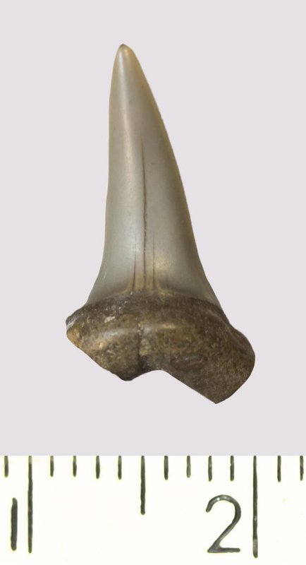 Зуб (фрагмент). Акула. Odontaspis venusta (Leriche, 1929). Классификация: Хордовые Chordata, Позвоночные Vertebrata, Хрящевые рыбы Chondrichthyes, Пластиножаберные Elasmobranchii