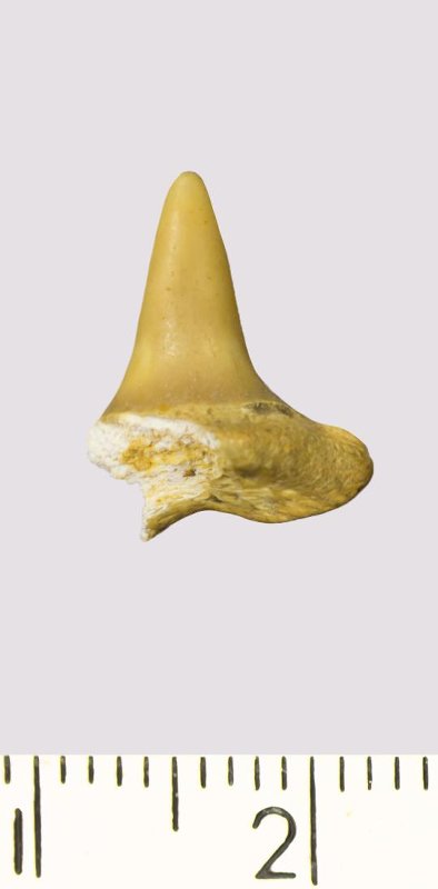 Зуб. Акула. Rhaphiodus sp. Классификация: Хордовые Chordata, Позвоночные Vertebrata, Хрящевые рыбы Chondrichthyes, Пластиножаберные Elasmobranchii