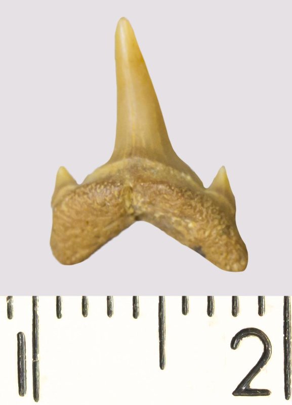 Зуб. Акула. Odontaspis striatula Dalinkevicius, 1935. Классификация: Хордовые Chordata, Позвоночные Vertebrata, Хрящевые рыбы Chondrichthyes, Пластиножаберные Elasmobranchii