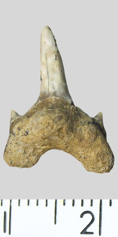 Зуб. Акула. Archaeolamna sp. Классификация: Хордовые Chordata, Позвоночные Vertebrata, Хрящевые рыбы Chondrichthyes, Пластиножаберные Elasmobranchii