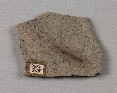 СИНТИП. Отпечаток на субстрате. Хвощ. Paracalamites longisegmentatus Naugolnykh, 2017. Классификация: Растения Plantae, Членистостебельное., Хвощёвые Equisetales, Черновиевые Tchernoviaceae, Хвощ Paracalamites longisegmentatus Naugolnykh, 2017