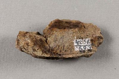 Черные обугленные остатки облиственных побегов в субстрате. Субстрат представлен светло-бежевым песчаником.