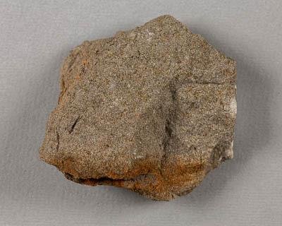 Черные обугленные остатки облиственных побегов в субстрате. Субстрат представлен светло-бежевым песчаником.