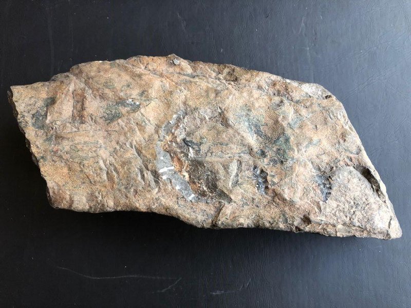 Две пластины передние медиа-дорсальные (AMD) на субстрате. Скульптура мелкобугорчатая. Субстрат представлен очень плотным мелкозернистым песчаником темно-серого цвета, ржаво-рыжего цвета на выветрелой поверхности.