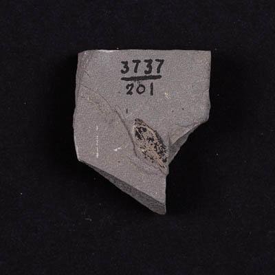 Отпечаток семени хвойного на породе. Порода представлена плотным алевролитом серого цвета.