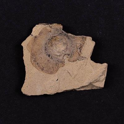 Отпечаток семени хвойного на породе. Ярко выражено ядро и широкая утоненная крылатка. Порода представлена плотным алевролитом бежевого и серого цвета.