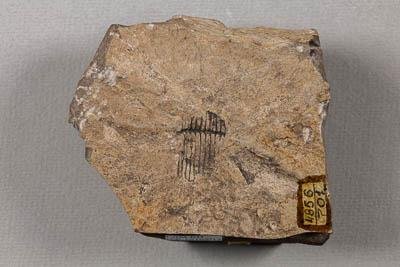 СИНТИП. Отпечаток на субстрате. Хвощ. Paracalamites longisegmentatus Naugolnykh, 2017. Классификация: Растения Plantae, Членистостебельное., Хвощёвые Equisetales, Черновиевые Tchernoviaceae, Хвощ Paracalamites longisegmentatus Naugolnykh, 2017