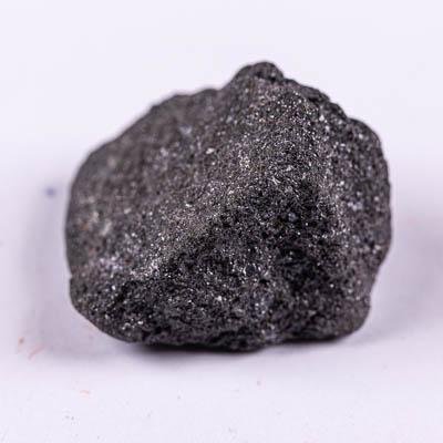 Образец неправильной формы. Цвет черный. Тяжелый. Блеск металлический. Массивный. Излом неровный. Неравномернокристаллический, мелкокристаллический и среднекристаллический. Кристаллы ромбической сингонии. Цвет черты черный. Также в образце присутствует кварц, прозрачный, бесцветный со стеклянным блеском.