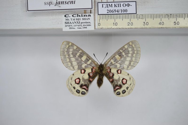 Бабочка. Parnassius (Driopa) orleans Oberthur, 1890.