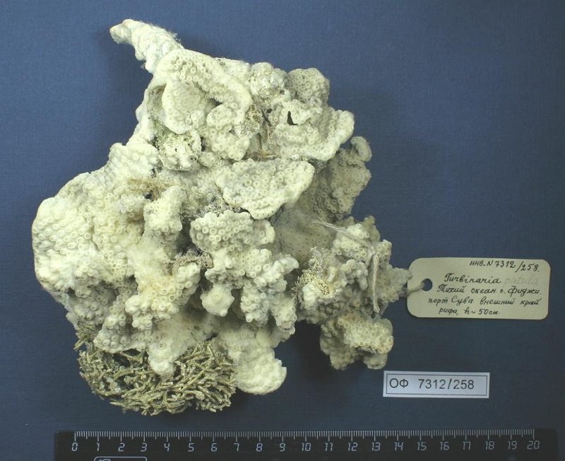 коралл турбинариа на колонии водоросли. Turbinaria patula (Dana, 1846), Dendrophylliidae. Классификация: Стрекающие Cnidaria, Коралловые полипы Anthozoa, Шестилучевые кораллы Hexacorallia