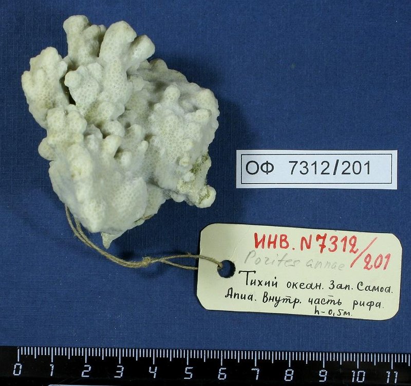 коралл. Porites annae Crossland, 1952, Poritidae. Классификация: Стрекающие Cnidaria, Коралловые полипы Anthozoa, Шестилучевые кораллы Hexacorallia