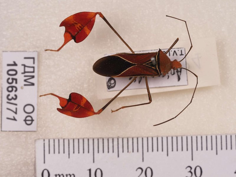 Сухое насекомое. Клоп краевик. Anisoscelis. Классификация: Членистоногие Arthropoda, Насекомые Insecta, Клопы Heteroptera, Клопы краевики Coreidae