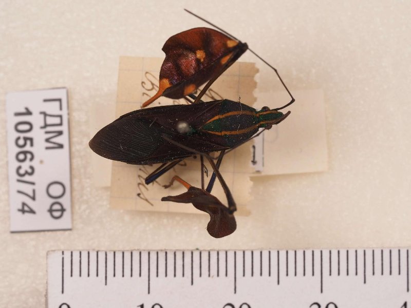 Сухое насекомое. Клоп краевик. Diactor bilineatus. Классификация: Членистоногие Arthropoda, Насекомые Insecta, Клопы Heteroptera, Клопы краевики Coreidae