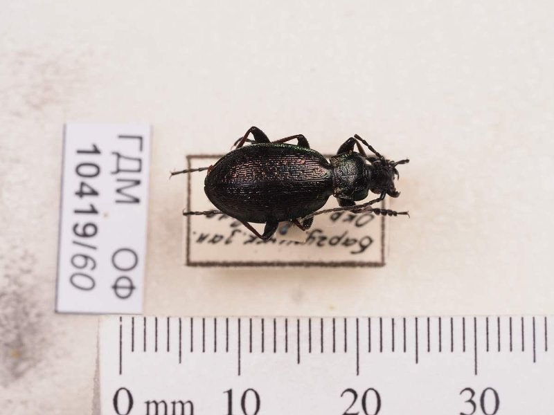 Сухое насекомое. Жук жужелица. Carabus viridilimbatus Motschulsky, 1845. Классификация: Членистоногие Arthropoda, Насекомые Insecta, Жуки Coleoptera, Жужелицы Carabidae