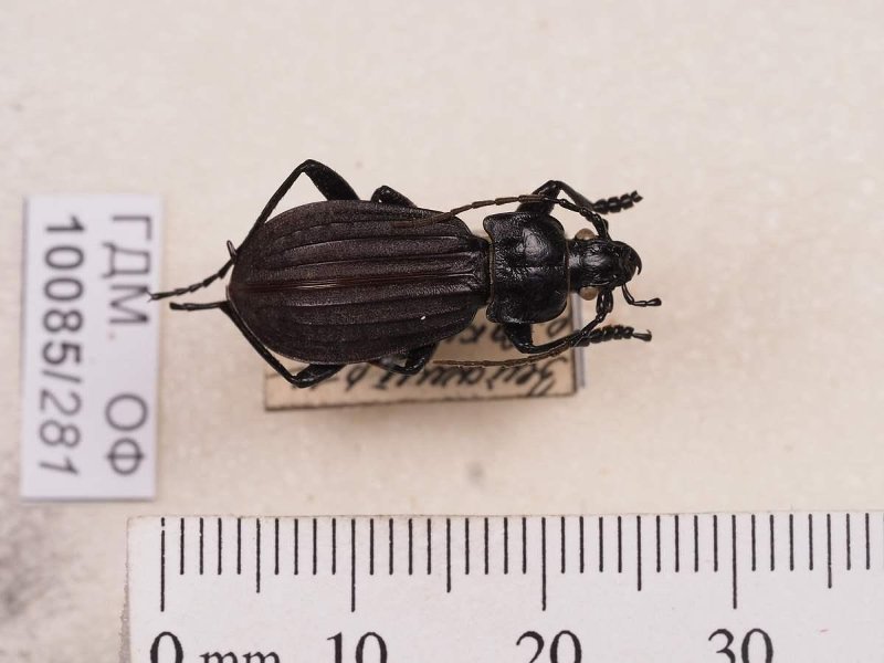 Сухое насекомое. Жук жужелица. Carabus canaliculatus Adams, 1812. Классификация: Членистоногие Arthropoda, Насекомые Insecta, Жуки Coleoptera, Жужелицы Carabidae