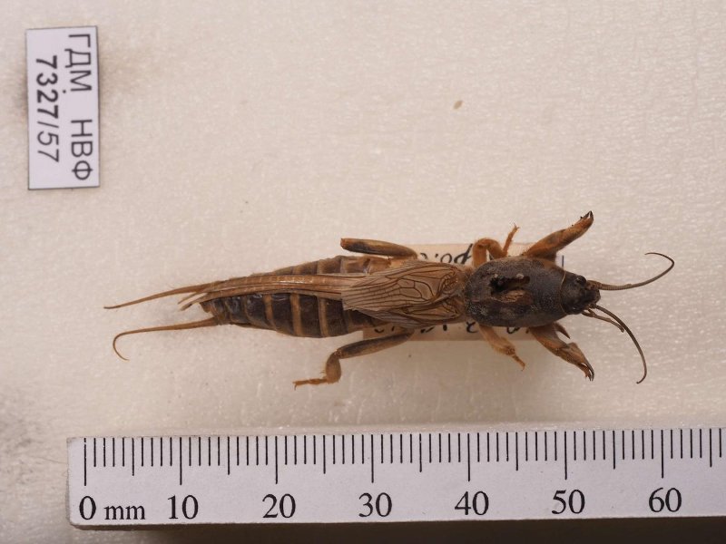 Сухое насекомое. Медведка. Gryllotalpa unispina Saussure, 1874. Классификация: Членистоногие Arthropoda, Насекомые Insecta, Прямокрылые Orthoptera, Медведки Gryllotalpidae
