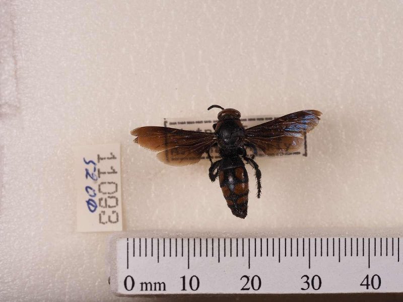 Сухое насекомое. Оса сколия. Scolia. Классификация: Членистоногие Arthropoda, Насекомые Insecta, Перепончатокрылые Hymenoptera, Осы сколии Scoliidae