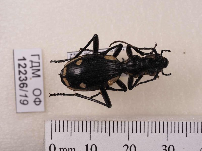 Сухое насекомое. Жужелица антия. Anthia sexmaculata (Fabricius, 1787). Классификация: Членистоногие Arthropoda, Насекомые Insecta, Жуки Coleoptera, Жужелицы Carabidae
