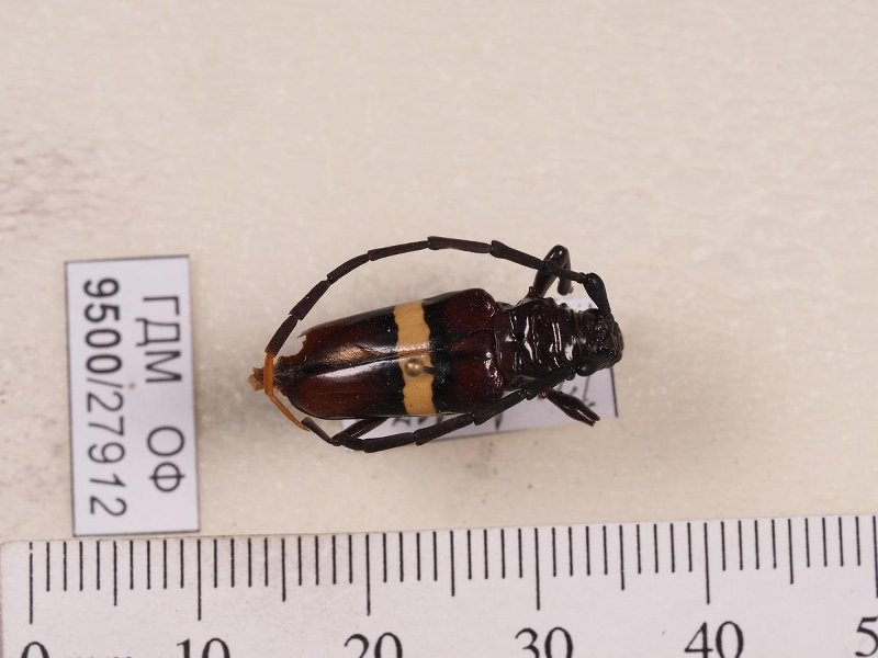 Сухое насекомое. Жук усач. Trachyderes politus Bates, 1870. Классификация: Членистоногие Arthropoda, Насекомые Insecta, Жуки Coleoptera, Усачи Cerambycidae