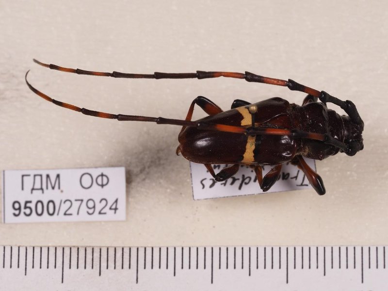 Сухое насекомое. Жук усач. Trachyderes succinctus (Linnaeus, 1758). Классификация: Членистоногие Arthropoda, Насекомые Insecta, Жуки Coleoptera, Усачи Cerambycidae