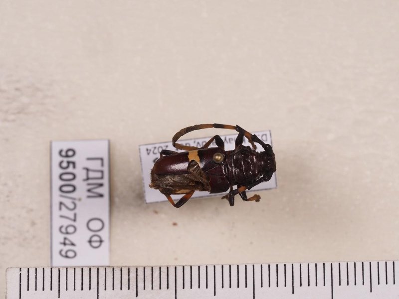 Сухое насекомое. Жук усач. Trachyderes succinctus (Linnaeus, 1758). Классификация: Членистоногие Arthropoda, Насекомые Insecta, Жуки Coleoptera, Усачи Cerambycidae