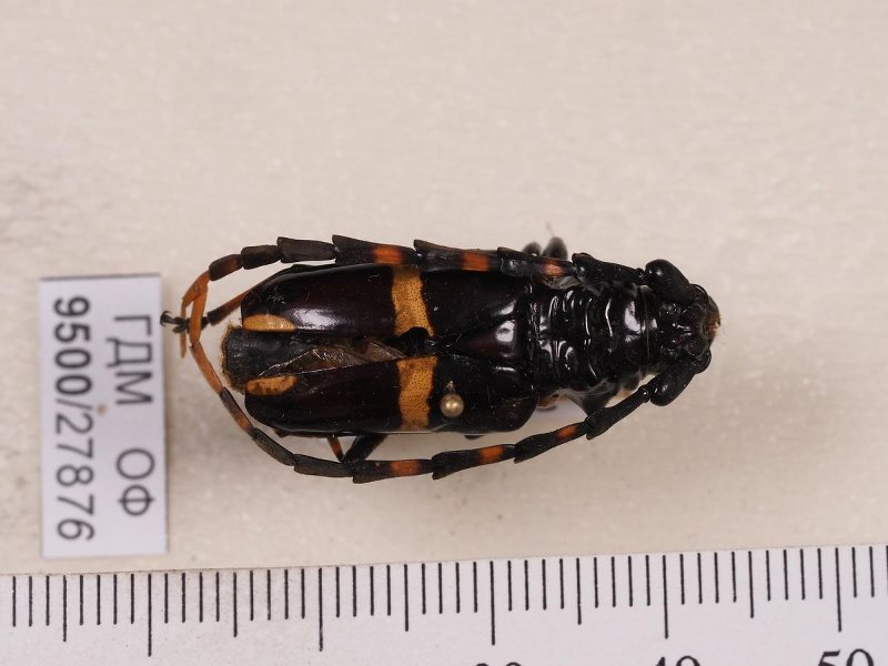 Сухое насекомое. Жук усач. Trachyderes cingulatus Klug, 1825. Классификация: Членистоногие Arthropoda, Насекомые Insecta, Жуки Coleoptera, Усачи Cerambycidae