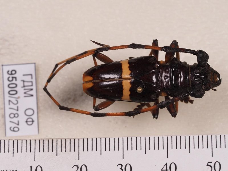 Сухое насекомое. Жук усач. Trachyderes cingulatus Klug, 1825. Классификация: Членистоногие Arthropoda, Насекомые Insecta, Жуки Coleoptera, Усачи Cerambycidae