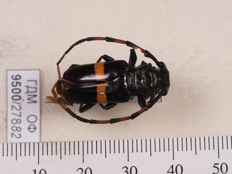 Сухое насекомое. Жук усач. Trachyderes distinctus Bosq, 1951. Классификация: Членистоногие Arthropoda, Насекомые Insecta, Жуки Coleoptera, Усачи Cerambycidae