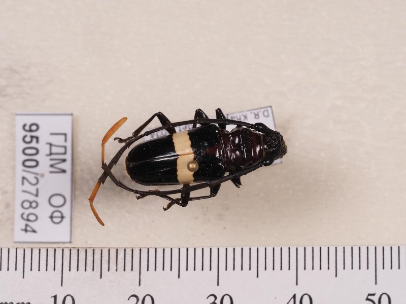 Сухое насекомое. Жук усач. Trachyderes hermani Hudepohl, 1985. Классификация: Членистоногие Arthropoda, Насекомые Insecta, Жуки Coleoptera, Усачи Cerambycidae
