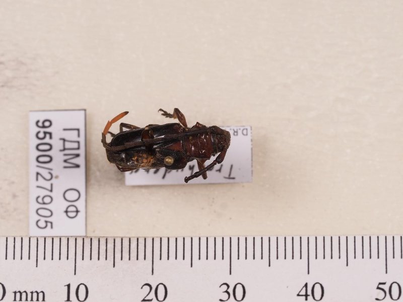 Сухое насекомое. Жук усач. Trachyderes politus Bates, 1870. Классификация: Членистоногие Arthropoda, Насекомые Insecta, Жуки Coleoptera, Усачи Cerambycidae