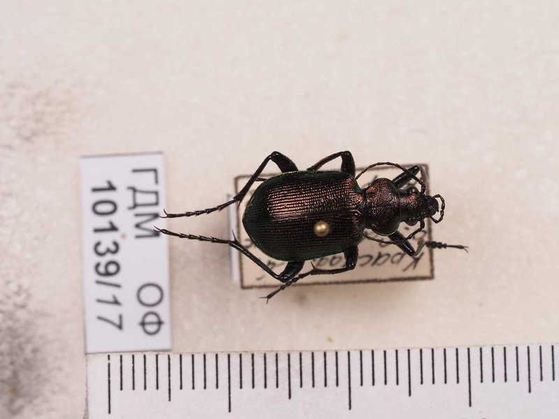Сухое насекомое. Жук жужелица. Calosoma inquisitor (Linnaeus, 1758). Классификация: Членистоногие Arthropoda, Насекомые Insecta, Жуки Coleoptera, Жужелицы Carabidae
