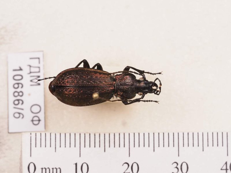 Сухое насекомое. Жук жужелица. Carabus armeniacus Mannerheim, 1830. Классификация: Членистоногие Arthropoda, Насекомые Insecta, Жуки Coleoptera, Жужелицы Carabidae