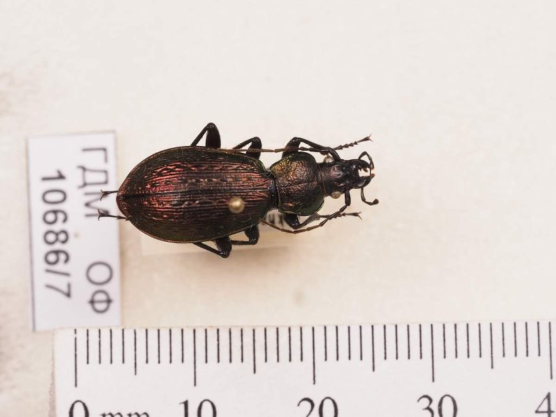 Сухое насекомое. Жук жужелица. Carabus armeniacus Mannerheim, 1830. Классификация: Членистоногие Arthropoda, Насекомые Insecta, Жуки Coleoptera, Жужелицы Carabidae