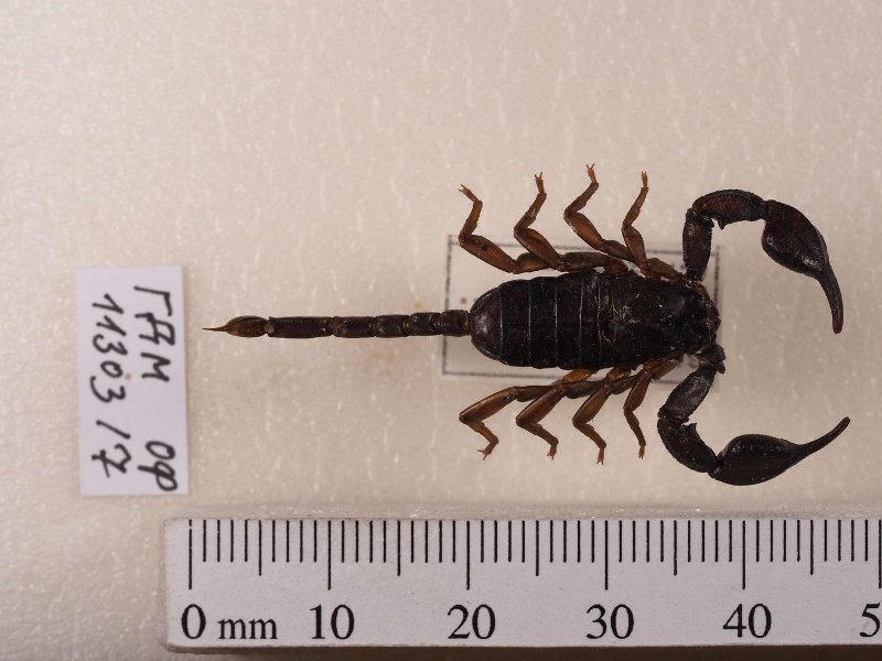 Сухой препарат. Скорпион. Euscorpius. Классификация: Членистоногие Arthropoda, Паукообразные (подтип Хелицеровые) Arachnida (subphylum Chelicerata), Скорпионы Scorpiones, Эускорпииды Euscorpiidae