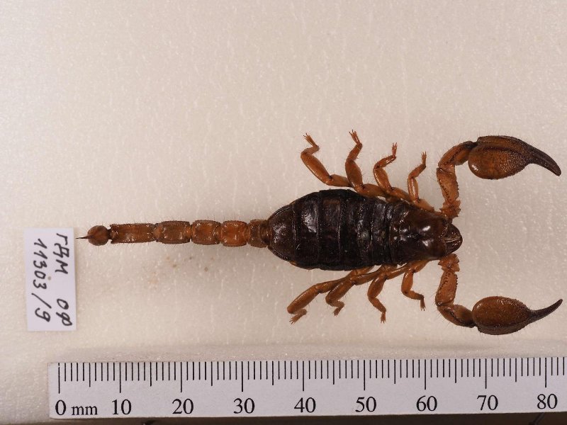 Сухой препарат. Скорпион. Scorpio maurus. Классификация: Членистоногие Arthropoda, Паукообразные (подтип Хелицеровые) Arachnida (subphylum Chelicerata), Скорпионы Scorpiones, Настоящие скорпионы Scorpionidae