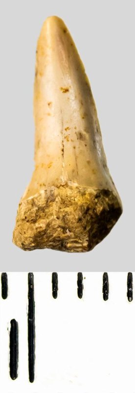 Зуб (фрагмент). Акула. Striatolamia macrota (Agassiz, 1843)