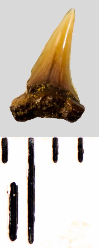 Зуб. Акула. Eostriatolamia subulata (Agassiz, 1843). Классификация: Хордовые Chordata, Позвоночные Vertebrata, Хрящевые рыбы Chondrichthyes, Пластиножаберные Elasmobranchii, Акулы Selachii, Ламнообразные Lamniformes, Песчаные акулы Odontaspididae