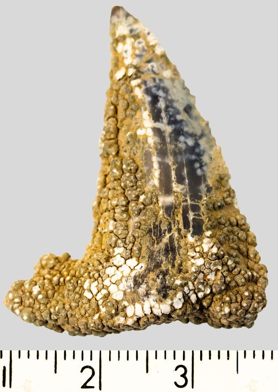 Зуб. Акула. Otodus subserratus (Agassiz, 1843). Классификация: Хордовые Chordata, Позвоночные Vertebrata, Хрящевые рыбы Chondrichthyes, Пластиножаберные Elasmobranchii