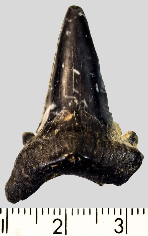 Зуб. Акула. Otodus subserratus (Agassiz, 1843). Классификация: Хордовые Chordata, Позвоночные Vertebrata, Хрящевые рыбы Chondrichthyes, Пластиножаберные Elasmobranchii