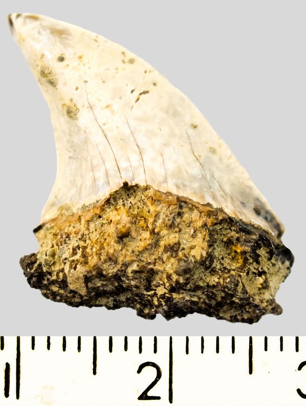 Зуб. Акула. Otodus subserratus (Agassiz, 1843). Классификация: Хордовые Chordata, Позвоночные Vertebrata, Хрящевые рыбы Chondrichthyes, Пластиножаберные Elasmobranchii
