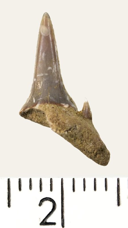 Зуб. Акула. Hypotodus sp. Классификация: Хордовые Chordata, Позвоночные Vertebrata, Хрящевые рыбы Chondrichthyes, Пластиножаберные Elasmobranchii