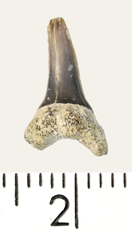 Зуб. Акула. Hypotodus sp. Классификация: Хордовые Chordata, Позвоночные Vertebrata, Хрящевые рыбы Chondrichthyes, Пластиножаберные Elasmobranchii
