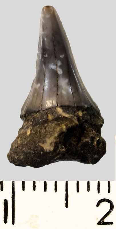 Зуб. Акула. Hypotodus robustus (Leriche, 1921). Классификация: Хордовые Chordata, Позвоночные Vertebrata, Хрящевые рыбы Chondrichthyes, Пластиножаберные Elasmobranchii