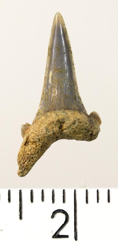 Зуб. Акула. Hypotodus sp. Классификация: Хордовые Chordata, Позвоночные Vertebrata, Хрящевые рыбы Chondrichthyes, Пластиножаберные Elasmobranchii